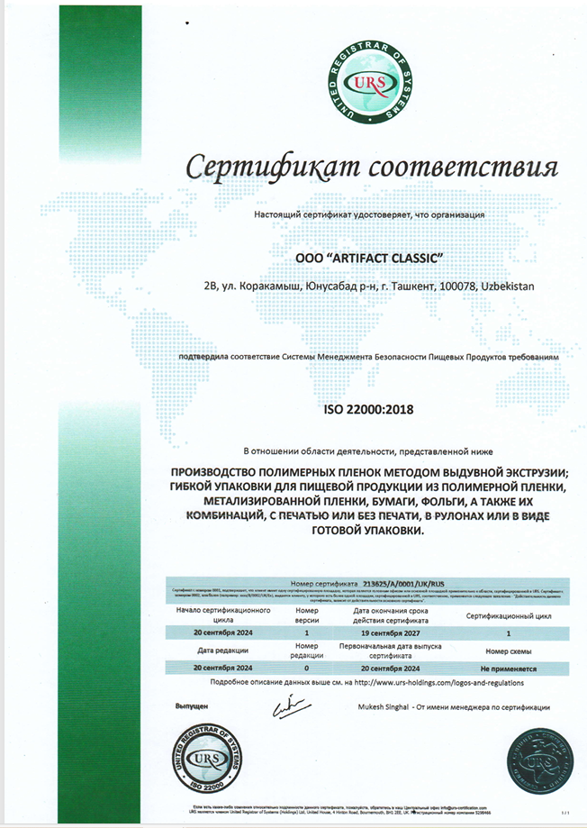 Производство полимерных пленок методом выдувной экструзии;Гибкой упаковки для пищевой продукции из полимерной пленки, метализированной пленки, бумаги, фольги, а также их комбинаций, с печатью или без печати, в рулонах или в виде готовой упаковки.